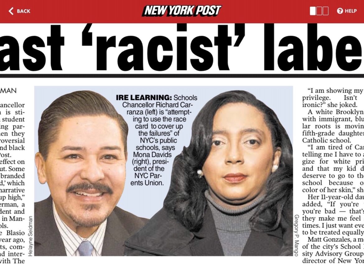 Carranza is “attempting to use the race card to cover up the failures of New York City’s K-12 school system,” she said. “We have hundreds of thousands of high school students who are not reading, writing and doing math at grade level, and that is criminal.”